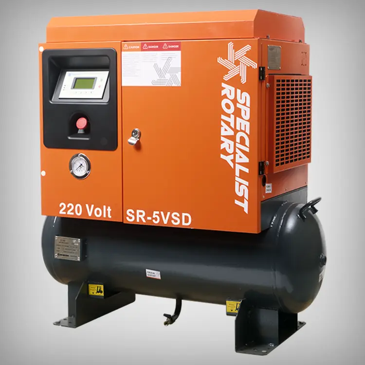 Just like its predecessor, the SR-5.5VSD, this model incorporates a soft start system that places minimal strain on the 220V electrical supply. A standard 25Amp breaker is more than sufficient to power this variant to its maximum RPM and pressure, ensuring smooth and efficient operation.
